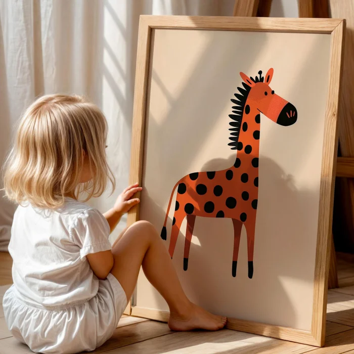 Product: Orange Giraffe Eclectic Style Kids' Room Decor Wooden Framed Wall Art