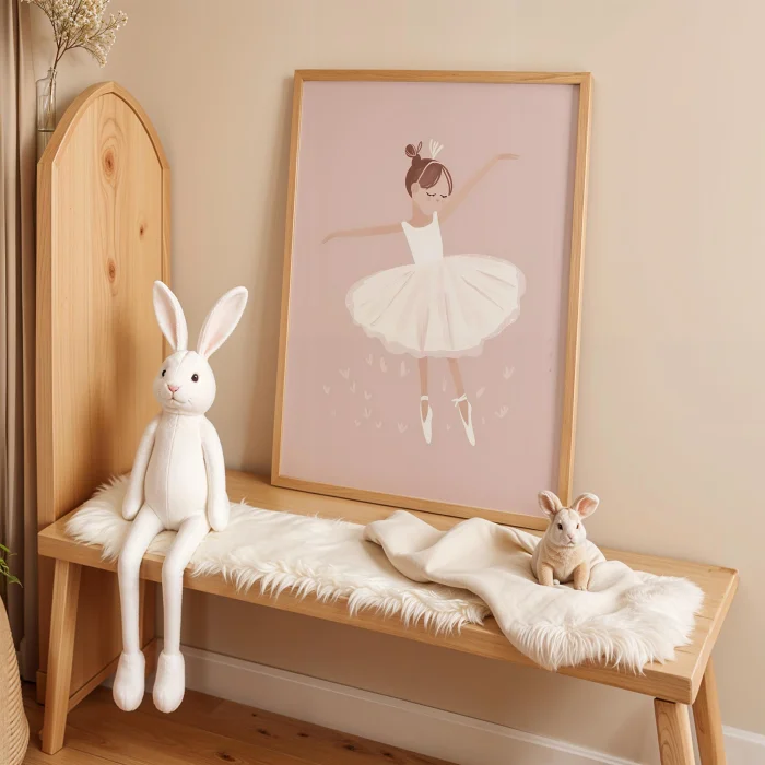 Product: Pink Arka Background Balerin Children's Room Wooden Framed Wall Art