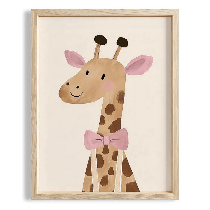 Product: Pink Papyonlu Cute Giraffe Boho Girls' Room Wooden Wall Art