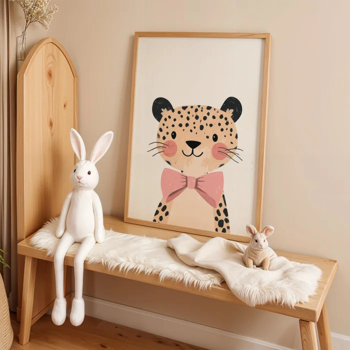 Product: Pink Papyonlu Tiger - White Background Children's Room Wooden Framed Wall Art