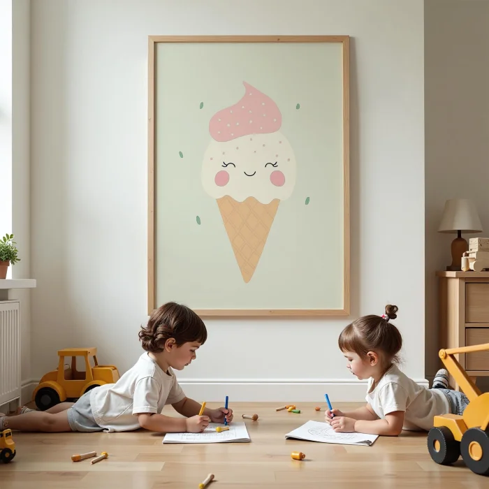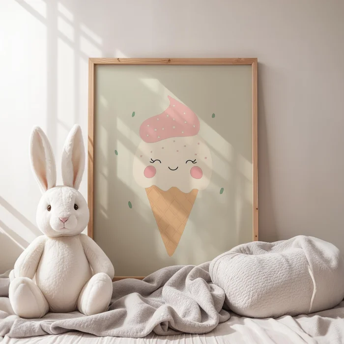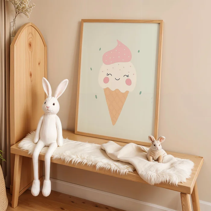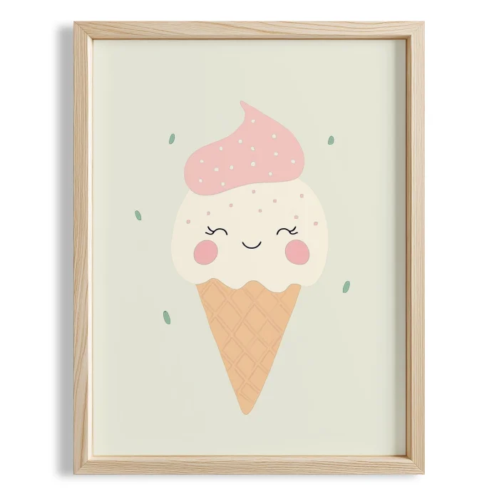 Smiling Ice Cream Cone Kids Room Wooden Wall Art