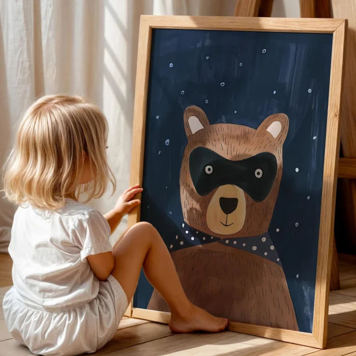 Product: Teddy Bear Hero Superman Space-themed Boys' Room Wooden Wall Art Ii