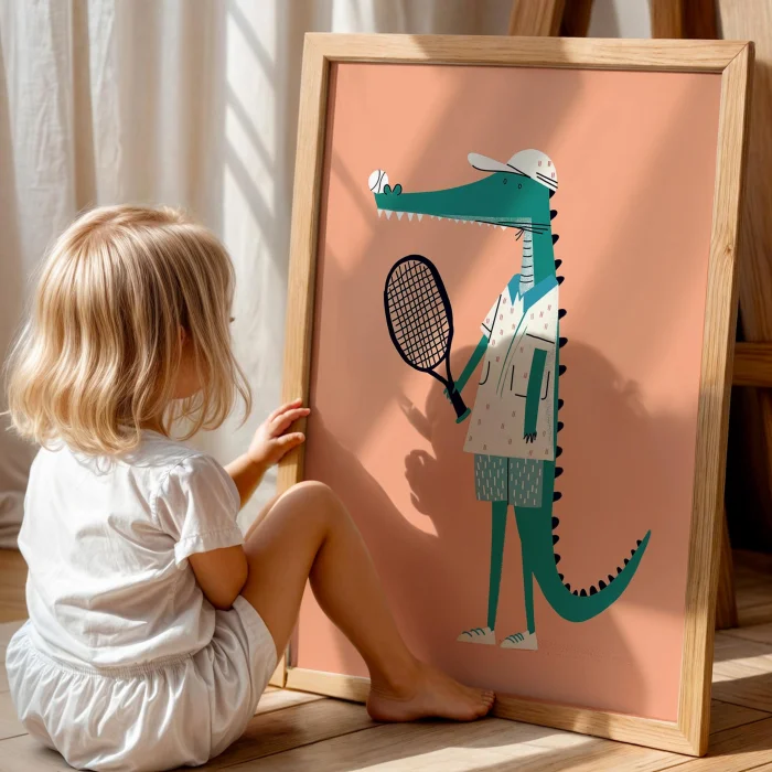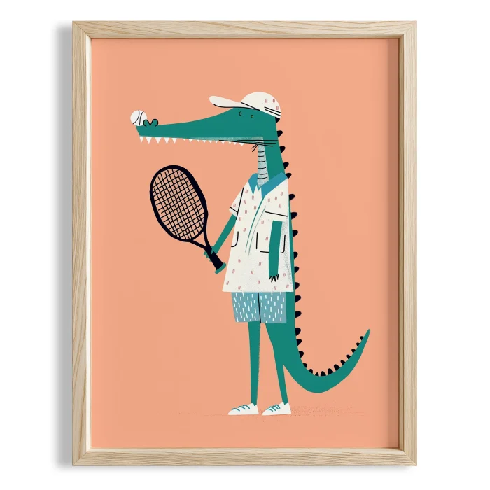 Tenisçi Crocodile - Eclectic Style Kids' Room Decor Wooden Framed Wall Art