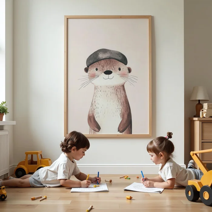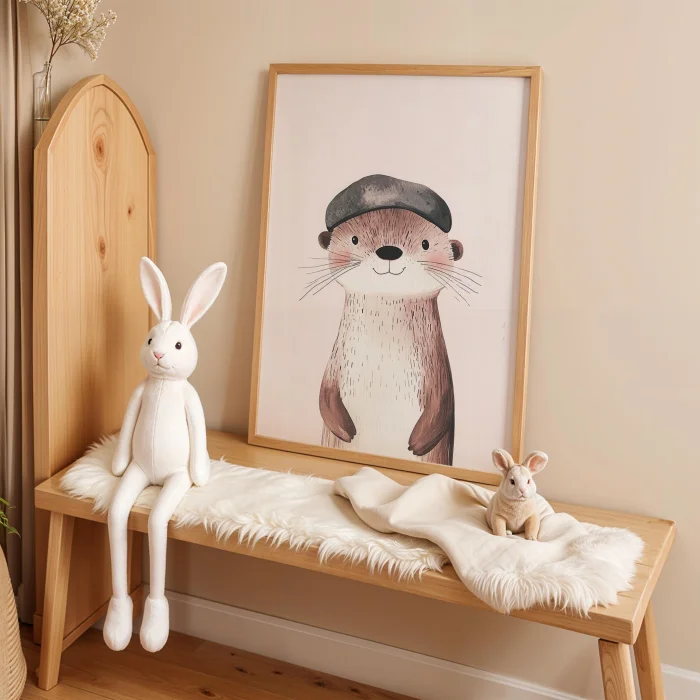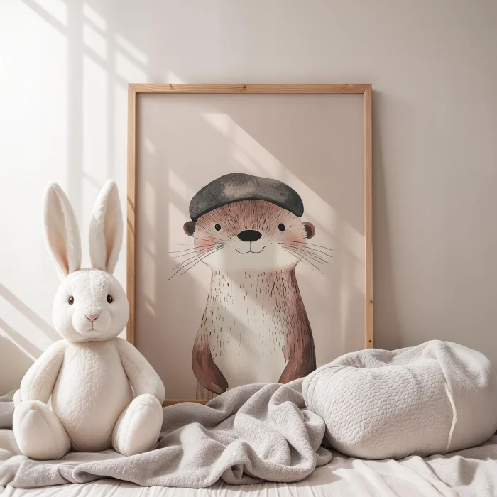 Product: With Hat Su Samuru - White Background Children's Room Wooden Framed Wall Art