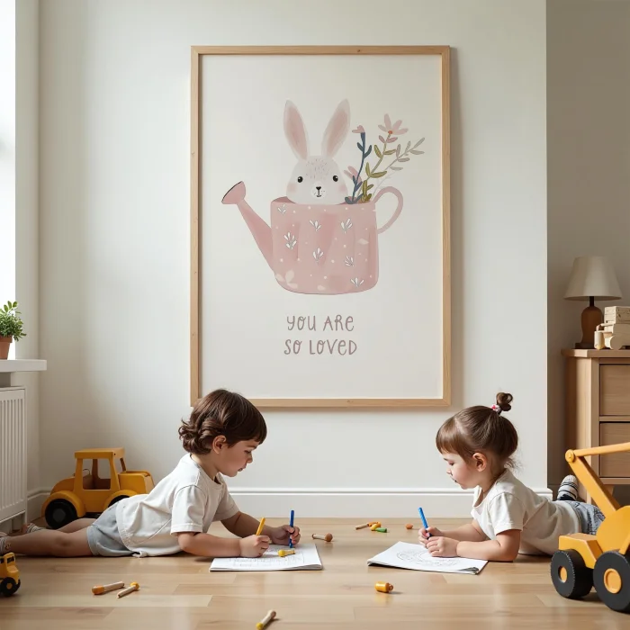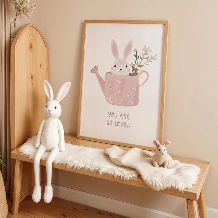 Product: You Are So Loved Text And Floral Bunny Kids Room Wooden Wall Art