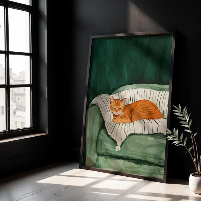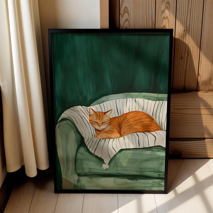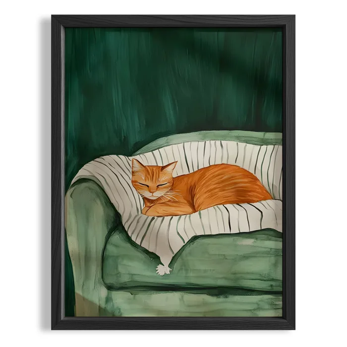 Product: Rest With Cat I - Green Sofa Wooden Framed Print