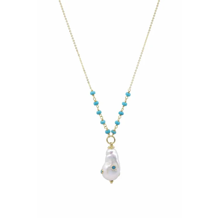 Product: Blue Snow - Turquoise And Baroque Pearl Necklace