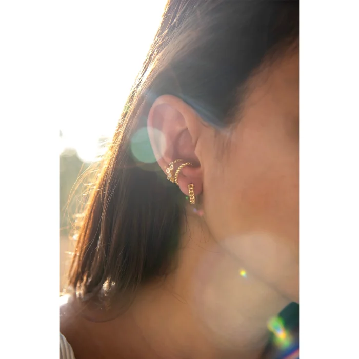 Hoop earrings with 24K micron gold plated chain detail on brass