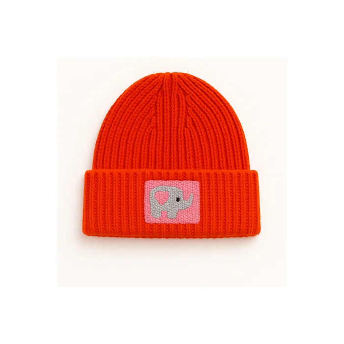 Product: Orange Beanie Pink Elephant Punch-embroidery Patterned Luxury Wool Hat Holiday/christmas Gift
