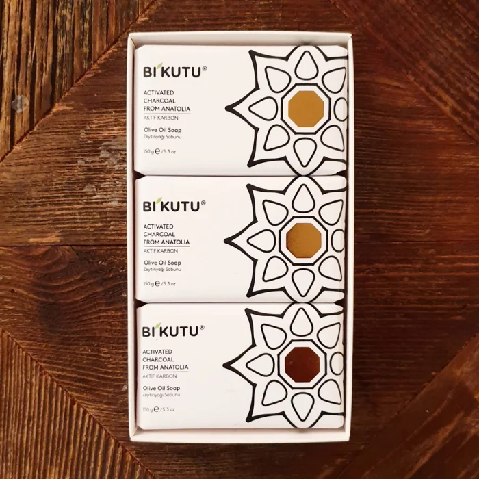 Product: Natural Soap With Olive Oil 3 In 1 Box. Includes 3pcs Active Carbon Charcoal Soap