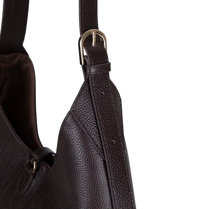 Crescente Smoked Espresso Genuine Leather Women's Half-Moon Shaped, Handmade Shoulder Bag Sculptural form, timeless stance. The signature piece of the SCULPTED ESSENTIALS collection, CRESCENTE offers a strong yet muted elegance with its modern half-moon silhouette and simple gold-toned buckle detail. Handcrafted from 100% genuine leather, CRESCENTE offers the space needed for daily use in an elegant form; With its microfiber suede inner lining, it creates a premium feel in every contact. It is neither too ambitious nor ordinary. Just right. Thanks to its adjustable leather shoulder strap, it provides comfort all day long. The magnetic closure system offers practical use, while the inner zippered pocket creates a safe space for small but valuable items. CRESCENTE is a sophisticated shoulder bag that effortlessly accompanies day to night in city life.