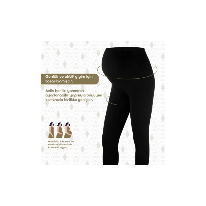 Product Description:Bmom Pregnancy & Postpartum Long Leggings: The Choice of Stylish Mothers! Do not compromise on your style while caring about your health and comfort. Maintain your elegance throughout pregnancy and enjoy fashion without sacrificing your comfort with BMOM, prepared with Gezenbebe's unique design expertise. Highlights:UNIQUE BMOM SIGNATURE: These leggings are not only a functional Maternity and Postpartum Leggings, but also make a fashion mark with Bmom's special pattern. UNIQUE DESIGN: BMM long maternity tights are carefully designed for both daily wear and sports activities so that you feel comfortable and free. ENJOY YOUR PREGNANCY: Thanks to its flexible fabric, it does not leave marks on the body and does not leave knee marks. BREATHABLE FABRIC: With its breathable and hypoallergenic fabric, it provides extra comfort all day long. ADJUSTABLE WAIST STRUCTURE: With its adjustable structure from both sides of the waist, it adapts to your growing belly. LONG-TERM USE: You can easily use it during pregnancy, postpartum and breastfeeding. Technical Specifications:Sizes: Small, Medium, Large, X-Large, XXLargeColors: BlackFabric: 93% cotton, 7% lycraExperience comfort and elegance together in every period with BMOM. Let your choice be your assurance!