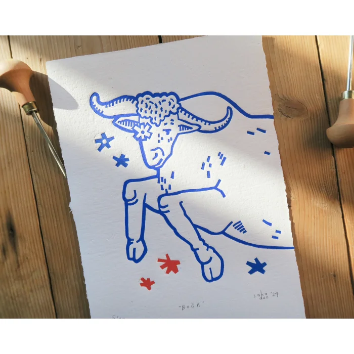 Product: Taurus Limba Wood Framed Linocut Print