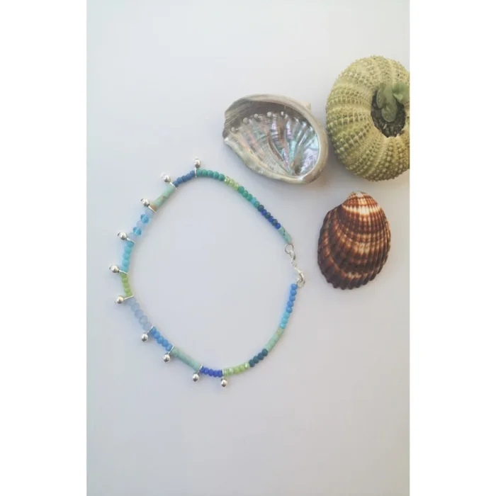 Product: Women's Blue Green Silver Beaded Natural Stone Anklet