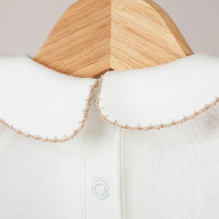 • Beige crochet trimmed, wreathed, horse embroidery, baby collar apron model.