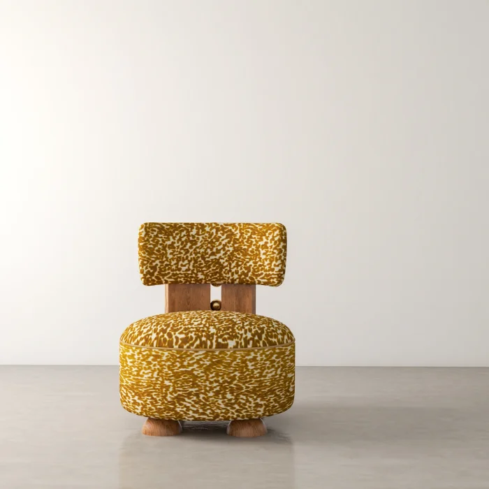 Material: Chestnut wood, Textured fabric with special pattern design, brass plated balls in the back detail