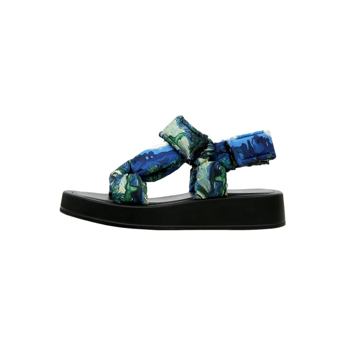 Take art into your stride! Women's Vegan Leather Blue Thick Sole Sandals – Vincent van Gogh The Olive Trees The design adds a modern touch to the style with its thick sole comfort and strappy design. The 100% vegan sandal will be a favorite of conscious choices with its eco-friendly structure. Discover the difference of design sandals for an eye-catching style!