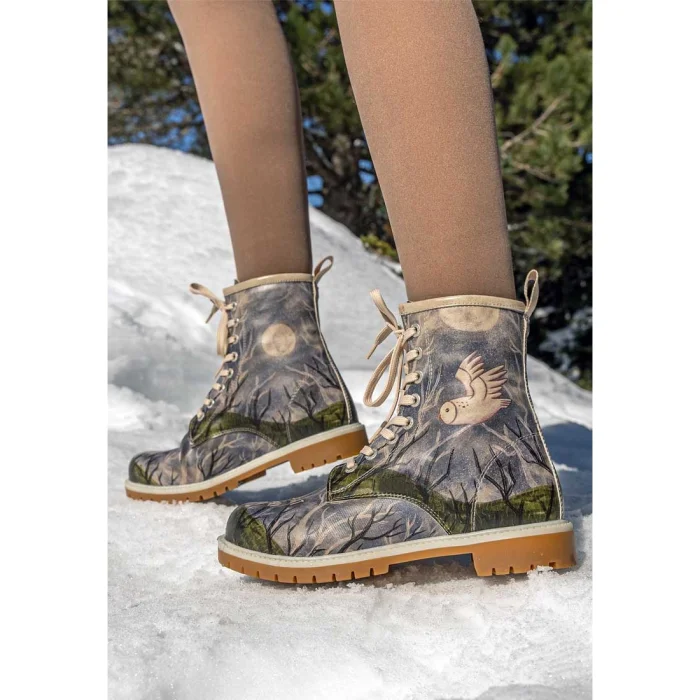 Product: Women Vegan Leather Gray Long Boots - The Night Is Dark Design
