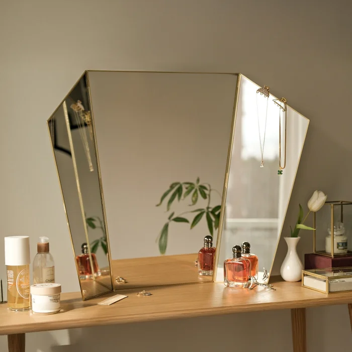 Product: Vanity Makeup Mirror | Brass Desktop | Gold Decorative | Tabletop Desk | Scandinavian | Portable Bedroom | Bohemian Modern