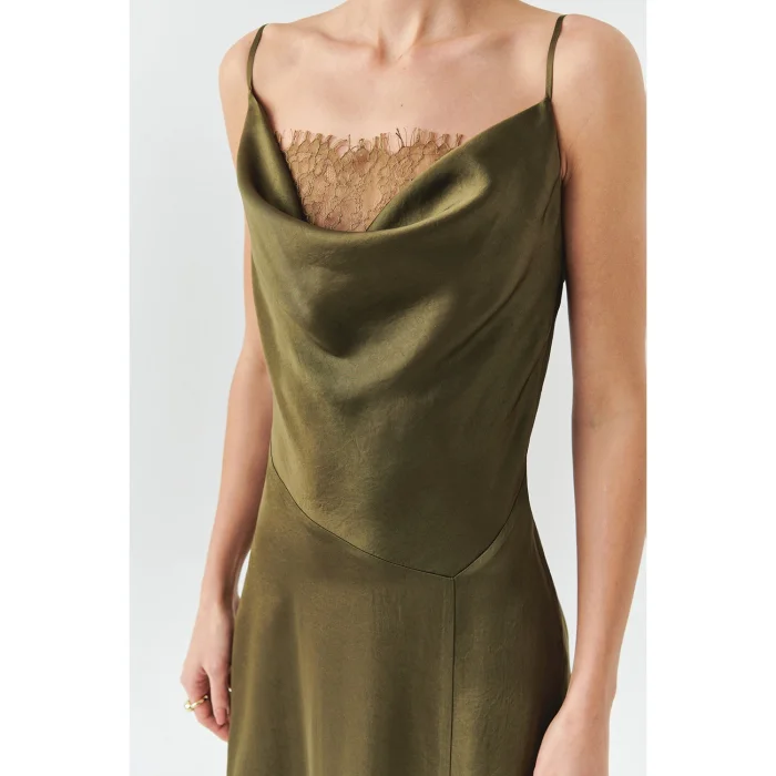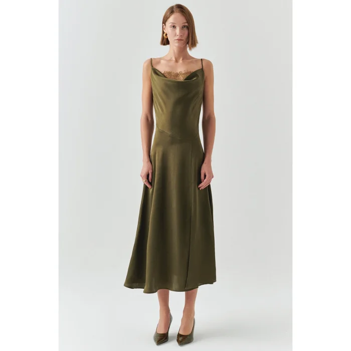 Product: Lace Detailed Straped Regular Satin Midi Dress