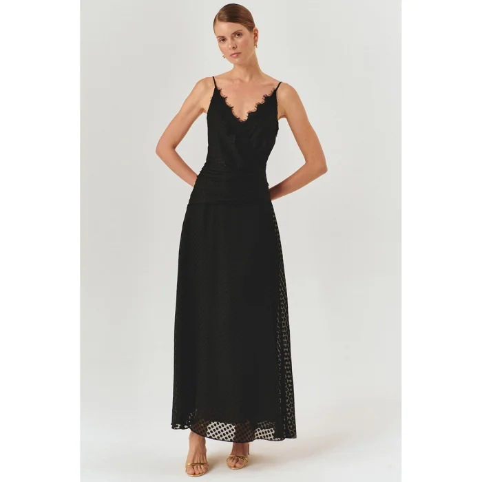 The midi shirt dress with lace detail, which carries the cheerful energy of floral patterns, perfectly combines comfort and elegance. With its vibrant floral patterns, shirt collar detail and adjustable lace waist design, it offers comfort all day long and provides a feminine and elegant look.