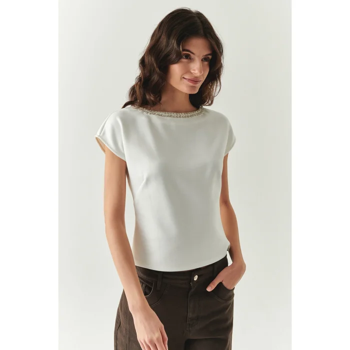 Product: Stone Detailed Boat Neck Sleeveless Regular Knitted Blouse