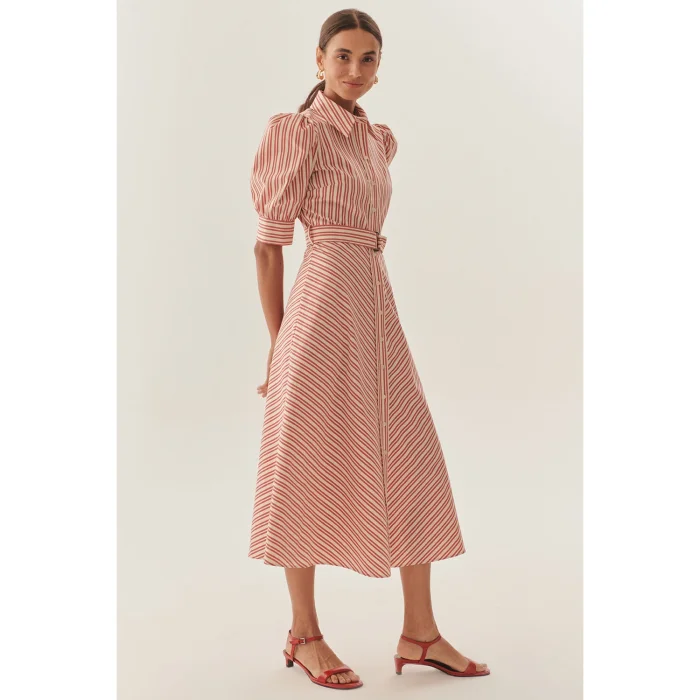Product: Striped Belted Balloon Sleeve A-line Regular Midi Shirt Dress