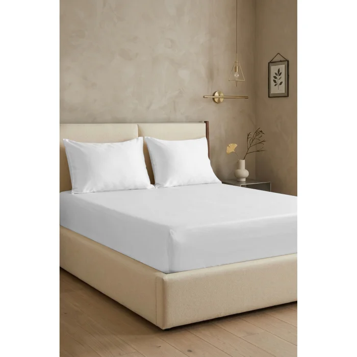 With its 100% cotton satin texture, it offers a smooth and silky touch; Thanks to its 200 TC (80 Strand) dense weave quality, it adds an elegant shine and durability to your bedroom; The set includes one fitted sheet and an appropriate number of pillowcases; The rubberized edge structure grips the bed flawlessly, ensuring no slipping and a tidy appearance; Sets measuring 100x200 cm and 120x200 cm include 1 piece of 50x70 cm pillowcase; 2 pieces of 50x70 cm pillowcases are available in options measuring 160x200 cm, 180x200 cm and 200x200 cm; Thanks to its natural cotton fibers, it provides ideal sleeping comfort in all seasons with its breathable structure; With its high absorbency feature, it does not cause sweating and promises a skin-friendly use; For long-lasting use, it is recommended to wash at 40 degrees with similar colors; It offers a refined sleep experience with its minimalist design and quality texture.