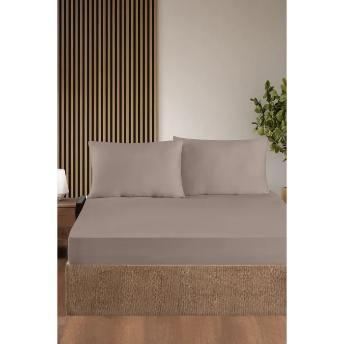 With its 100% cotton satin texture, it offers a smooth and silky touch; Thanks to its 200 TC (80 Strand) dense weave quality, it adds an elegant shine and durability to your bedroom; The set includes one fitted sheet and an appropriate number of pillowcases; The rubberized edge structure grips the bed flawlessly, ensuring no slipping and a tidy appearance; Sets measuring 100x200 cm and 120x200 cm include 1 piece of 50x70 cm pillowcase; 2 pieces of 50x70 cm pillowcases are available in options measuring 160x200 cm, 180x200 cm and 200x200 cm; Thanks to its natural cotton fibers, it provides ideal sleeping comfort in all seasons with its breathable structure; With its high absorbency feature, it does not cause sweating and promises a skin-friendly use; For long-lasting use, it is recommended to wash at 40 degrees with similar colors; It offers a refined sleep experience with its minimalist design and quality texture.