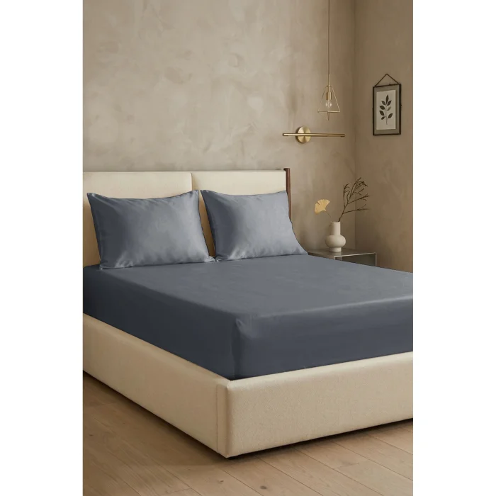 With its 100% cotton satin texture, it offers a smooth and silky touch; Thanks to its 200 TC (80 Strand) dense weave quality, it adds an elegant shine and durability to your bedroom; The set includes one fitted sheet and an appropriate number of pillowcases; The rubberized edge structure grips the bed flawlessly, ensuring no slipping and a tidy appearance; Sets measuring 100x200 cm and 120x200 cm include 1 piece of 50x70 cm pillowcase; 2 pieces of 50x70 cm pillowcases are available in options measuring 160x200 cm, 180x200 cm and 200x200 cm; Thanks to its natural cotton fibers, it provides ideal sleeping comfort in all seasons with its breathable structure; With its high absorbency feature, it does not cause sweating and promises a skin-friendly use; For long-lasting use, it is recommended to wash at 40 degrees with similar colors; It offers a refined sleep experience with its minimalist design and quality texture.
