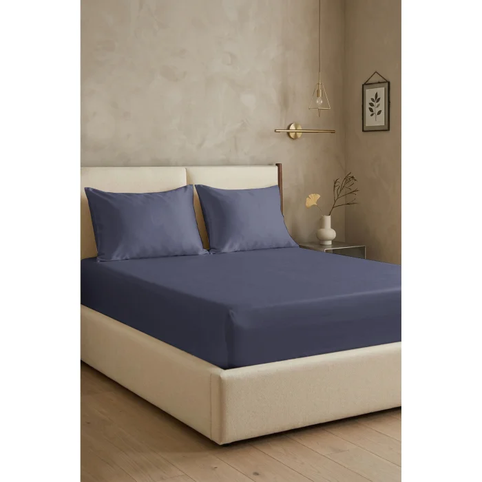 With its 100% cotton satin texture, it offers a smooth and silky touch; Thanks to its 200 TC (80 Strand) dense weave quality, it adds an elegant shine and durability to your bedroom; The set includes one fitted sheet and an appropriate number of pillowcases; The rubberized edge structure grips the bed flawlessly, ensuring no slipping and a tidy appearance; Sets measuring 100x200 cm and 120x200 cm include 1 piece of 50x70 cm pillowcase; 2 pieces of 50x70 cm pillowcases are available in options measuring 160x200 cm, 180x200 cm and 200x200 cm; Thanks to its natural cotton fibers, it provides ideal sleeping comfort in all seasons with its breathable structure; With its high absorbency feature, it does not cause sweating and promises a skin-friendly use; For long-lasting use, it is recommended to wash at 40 degrees with similar colors; It offers a refined sleep experience with its minimalist design and quality texture.