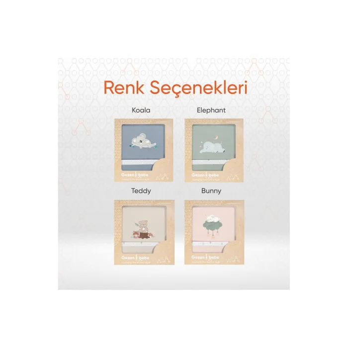 Product Description: Gezenbebe Hero Embroidered Baby & Child Quilt Cover (100x135): With Your Baby Every Night With Heroes Who Add Color To Dreams! Gezenbebe Hero Embroidered Baby & Child Quilt Cover has been carefully designed to make the little ones' sleep more colorful and comfortable. The combination of the calmness of pastel colors and the iconic Gezenbebe pattern will add not only elegance but also a loving atmosphere to your baby's and child's bed. The embroidery details of Gezenbebe's most beloved heroes, Elephant, Koala, Teddy Bear and Rabbit, make the quilt cover special and unique. Highlights:GEZENBEBE'S FAIRYTALE WORLD: Enrich your baby's dreams with Gezenbebe's iconic pattern and cute heroes. SKIN-FRIENDLY FABRIC: With its 100% cotton and breathable fabric, it offers the perfect touch for the sensitive skin of the little ones. CONVENIENT DESIGN: The practical button system offers the advantage of easily placing the duvet in the cover and staying stable. MODERN AND CHEERFUL: Let's add a warm and cheerful atmosphere to your baby's room with trendy patterns. FOR EVERY BABY: With its unisex style and color palette, it's an ideal choice for every baby. HARMLESS TO HEALTH: Water-based paint is preferred in prints, considering the health of your baby. PURSUIT OF EXCELLENCE: We continuously improve our quality, harmony and convenience through customer feedback. Technical Details: Our Gezenbebe quilt cover; It has dimensions of 100x135 cm and is fully compatible with baby and children's beds. It is designed to fit perfectly into standard baby and children's quilts. Color Options: Bunny (Rabbit), Elephant (Elephant), Koala (Koala) and Teddy (Teddy) Care Instructions: Wash at 30 degrees and dry without exposing to direct sunlight. With the Gezenbebe quilt cover, your little ones' sleep will be both comfortable and stylish. This special design, thought out in every detail, will accompany your baby's sweet dreams.
