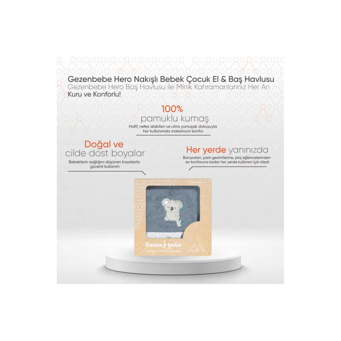Product Description: Gezenbebe Hero Embroidered Baby Children's Hand & Head Towel (50x90): Special Warmth for Tiny Hands with Hero Embroidery! Gezenbebe Hero Embroidered Baby Kids Hand & Head Towel has been prepared with special touches for your little ones. This towel, which has an elegant look with pastel tones, is home to the exquisite embroidery details of Gezenbebe's beloved heroes, Elephant, Rabbit, Teddy Bear and Koala. Decorated with the iconic Gezenbebe pattern, the piping complements the elegance of the towel and combines both functionality and aesthetics. Thanks to its soft texture, your baby's skin is gently hugged, offering a unique comfort after bathing or in hand washing rituals. This towel, which is ideal for both hands and head, is with the little ones with its Gezenbebe quality! Prominent Features:GEZENBEBE'S EXCLUSIVE DESIGN: With Gezenbebe's cute heroes, your little ones reflect their style after bathing. SUPERIOR QUALITY COTTON: This ultra-soft towel is suitable for long-term use by protecting the sensitive skin of the little ones with its breathable structure. IDEAL FOR SENSITIVE SKIN: Our hypoallergenic towels are specially designed for babies with sensitive skin and at risk of allergies. UNIVERSAL GIFT OPTION: With its cute design and pastel colors, it is the perfect gift alternative for both boys and girls. USE OF NATURAL DYES: In all prints, water-based dyes that do not harm children's health are preferred. CONTINUOUS DEVELOPMENT APPROACH: We prioritize quality and comfort by constantly improving our products with customer feedback. Technical Details:Dimensions: 50x90 cm.Material: 100% cotton. Features: Thanks to the natural and soft texture of cotton, it gently dries your children's hair and skin. Color Options: Bunny (Rabbit), Elephant (Elephant), Koala (Koala) and Teddy (Teddy) Care Instructions: Wash at 30 degrees and dry without exposing to direct sunlight. With Gezenbebe Hero Embroidered Baby Kids Hand & Head Towel, your little ones will always be comfortable, dry and stylish. This special design, which offers quality and elegance together, is a candidate to be their favorite towel!
