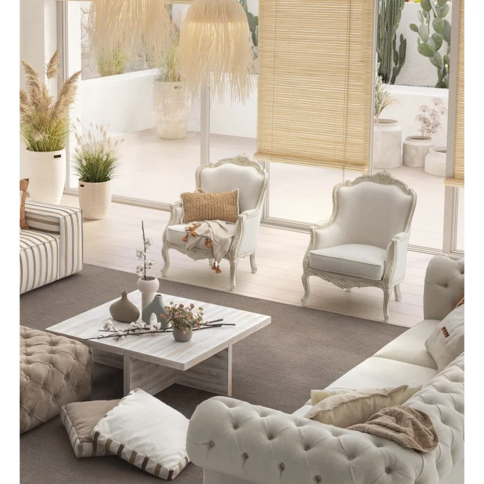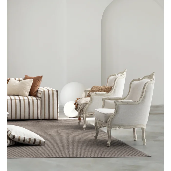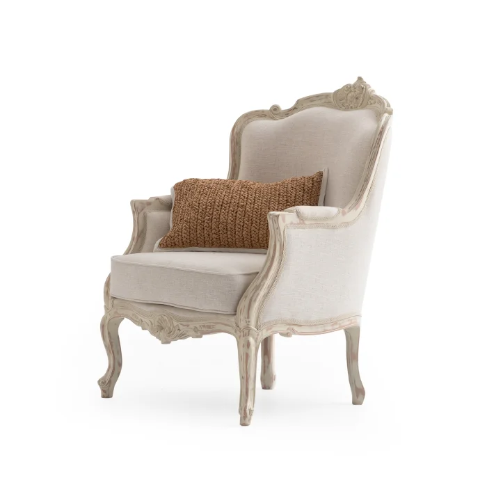 Artemis Linen Bergere offers an eye-catching design with its classic lines and elegant details. Finely crafted carved details and soft linen fabric combine both elegance and comfort. Providing a comfortable seating experience thanks to its ergonomic structure, Artemiz Linen Bergere has a sophisticated and timeless aesthetic understanding. With its structure compatible with both classical and modern decorations, it adds a warm and stylish touch to your living spaces.