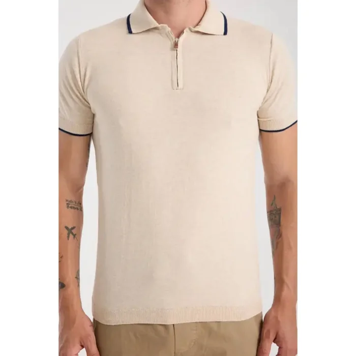 Product: 100% Cotton Half-zip Knit T-shirt With Contrast Stripe Detail