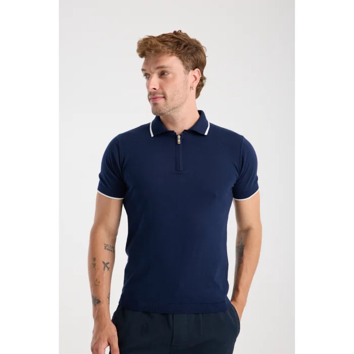 Product: 100% Cotton Half-zip Knit T-shirt With Contrast Stripe Detail