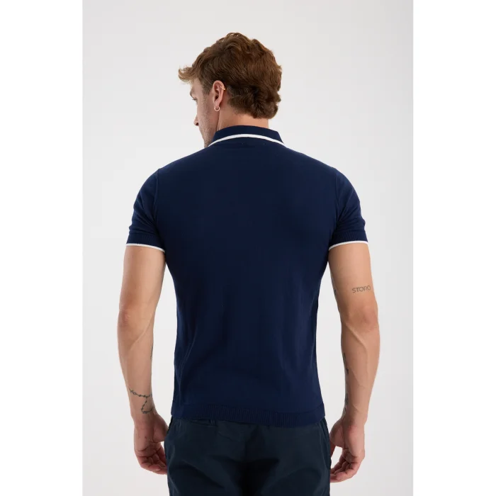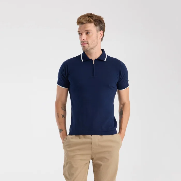 Product: 100% Cotton Half-zip Knit T-shirt With Contrast Stripe Detail