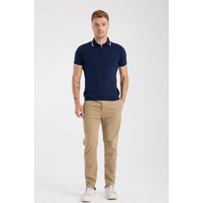 Product: 100% Cotton Half-zip Knit T-shirt With Contrast Stripe Detail