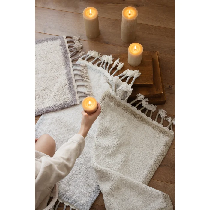 Softness: The natural softness of cotton offers a touch of luxury with every step. It is designed to provide convenience and comfort in your bathroom. Special Design: Each model is shaped by the careful work of our design team. Our mats, which stand out with their modern colors and special details, add an aesthetic touch to your bathroom.