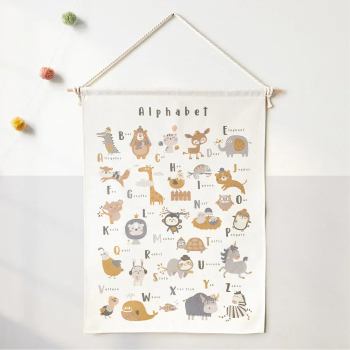 Product: English Alphabet Wall Tapestry, Organic Natural Cotton
