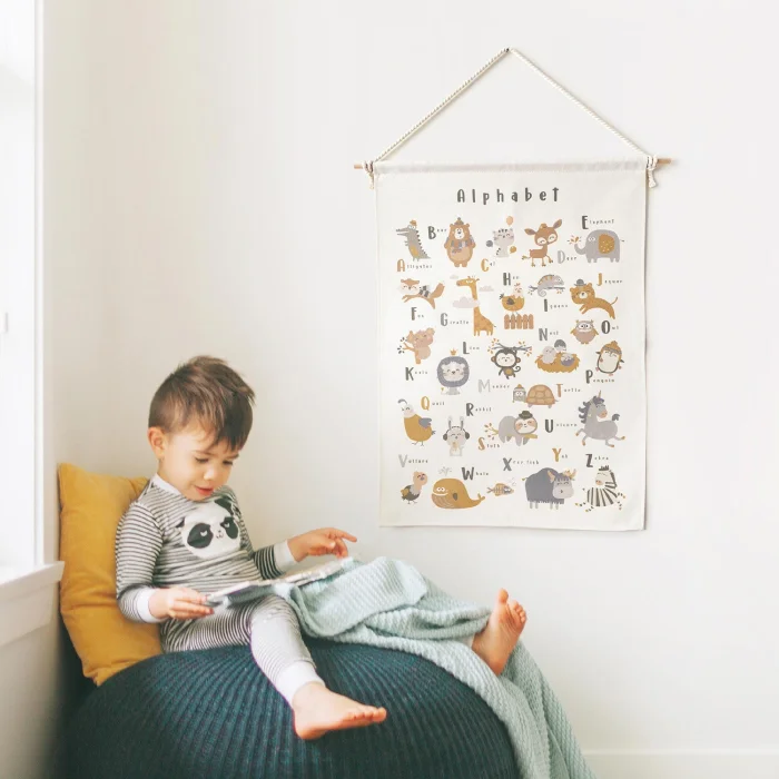 English Alphabet Wall Tapestry, Organic Natural Cotton