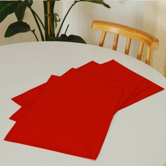 4-piece Pera Red Piping Detailed Duck Linen Washable, Stain-resistant Placemat Set