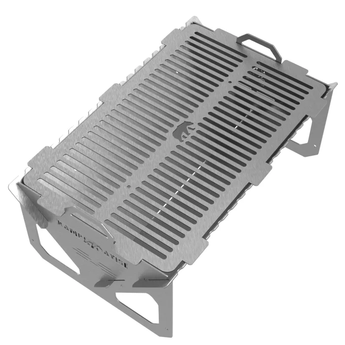 • Easy Barbecue™ folding grill allows you to set up and light your fire in seconds thanks to its proprietary design and joint slots for quick installation.