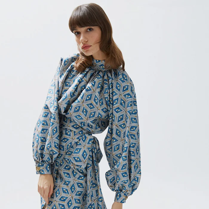 silk Hypnosis of the Eye High collar shirt with balloon sleeves