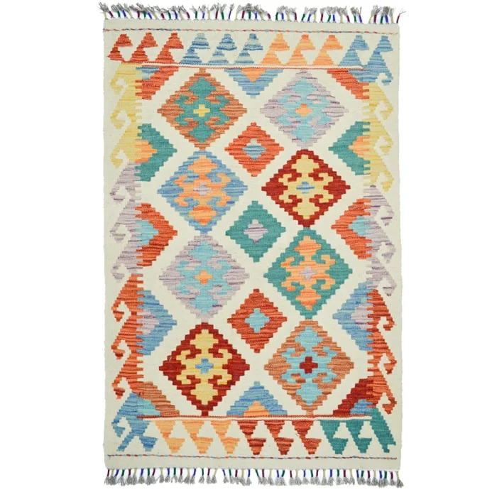 Product: Handwoven Wool Afghan Kilim, Cream Color 76x123 Cm (2.5x4 Ft)