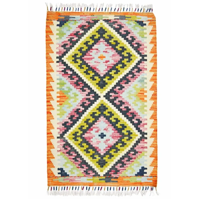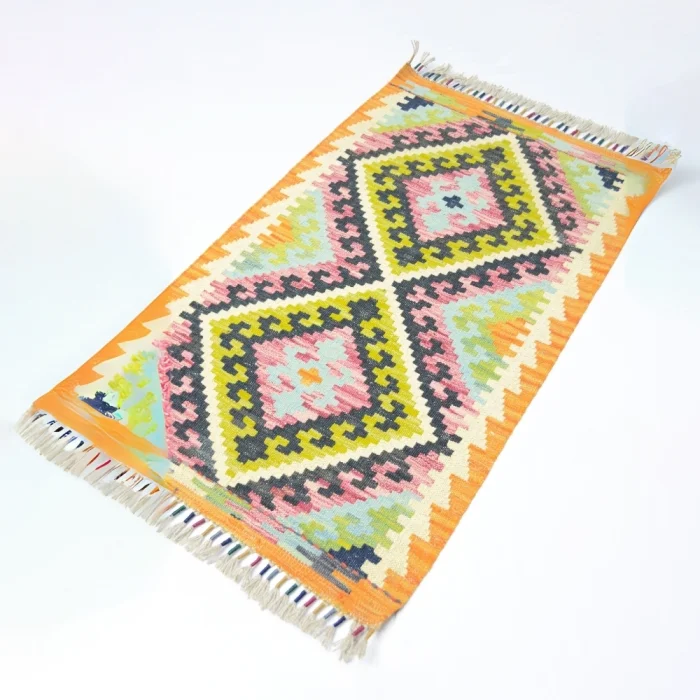 Product: Handwoven Wool Afghan Kilim, Orange Color 61x96 Cm (2x3.1 Ft)