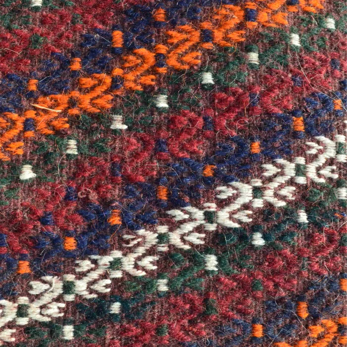 Product: Handwoven Wool Turkmen Kilim In Burgundy And Orange 103x124 Cm (3.4x4.1 Ft)