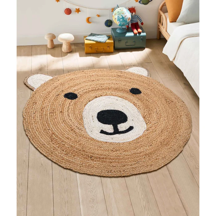 Natura Teddy Bear Figured Jute Carpet Wicker Carpet Children's Room Carpet 00027A The product is made of natural jute material. It is hand-woven. The diameter of the carpet is 100 cm. The cute teddy bear figure sparks your child's imagination, making their play more enjoyable. It is an excellent decoration item for children's rooms, kindergartens and playrooms. The simple and stylish design of natural jute easily adapts to different decoration styles. It adds a natural and elegant touch to home décor. Natura Jute Carpet with Teddy Bear Figure decorates children's rooms with a cute teddy bear figure, making your child's playground more enjoyable. It is both a stylish and functional decoration item. It should be wiped with salt water and a damp cloth. It is not recommended to carry out washing. Suitable for outdoor uses. You can clean by shaking or sweeping. Note: Actual colors may differ depending on lighting and monitor settings.
