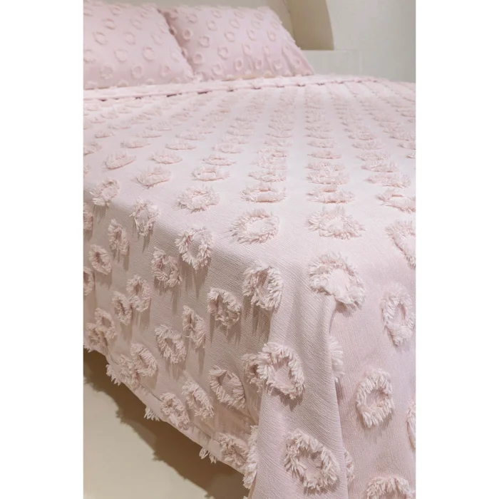 Sitra Powder Double Tassel Bedspread 230x250 2 Pillows 50x70 5032 This carefully crafted bedspread provides ample coverage with a generous size of 230x250 cm. The product set includes two 50x70 cm pillowcases. The elegant powder color adds calmness and elegance to your room. Thanks to its high-quality cotton content, it offers a soft and comfortable feeling. A bedspread effortlessly transforms your bedroom into a haven of tranquility, combining both comfort and aesthetics. Ideal for those looking for a tidy and stylish bedroom, the bedspread provides a polished and harmonious look. The circular tassel details on it reflect an original boho style and add a unique atmosphere to your room. The Sitra Double Tufted Bedspread is the perfect way to organize your bedroom and add a touch of style. Care Recommendation It is recommended to wash at 30 degrees. Bleaching should not be done. It does not require ironing. Lay-out drying is recommended. Dry cleaning should not be applied. Note: Actual colors may differ depending on lighting and monitor settings.