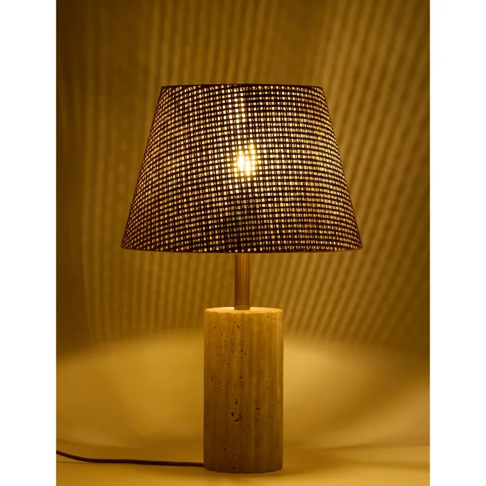 Material: Travertine body, Wicker-looking jute hat, E27 Socket, F Type Socket